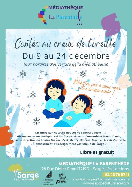 Contes au creux de l’oreille du 9 au 24 décembre 2025 la Médiathèque – Libre et Gratuit