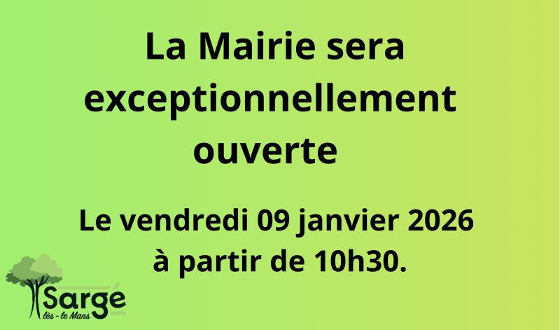 La Mairie ouvrira exceptionnellement ses portes à partir de 10h30 le vendredi 9 janvier 2026.