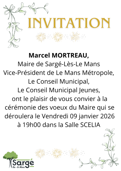 Les vœux du Maire 2026 auront lieu le vendredi 09 janvier à 19h00 à l’espace SCELIA