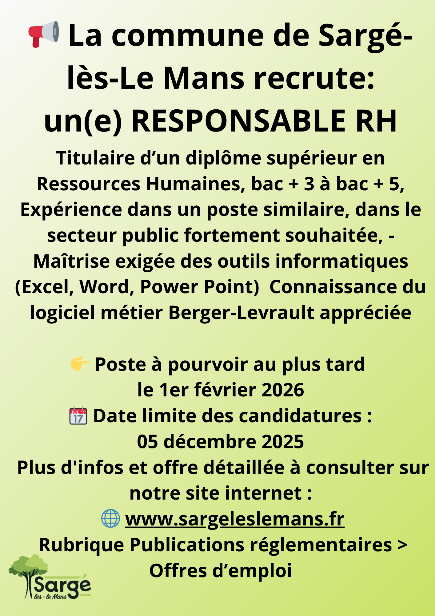 Titulaire d’un diplôme supérieur en Ressources Humaines, bac + 3 à bac + 5, Expérience dans un poste similaire, dans le secteur public fortement souhaitée, – Maîtrise exigée des outils