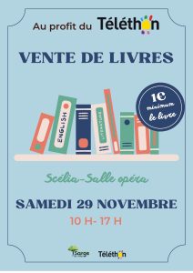 Le samedi 29 novembre 2025 -Vente de livres à SCÉLIA au profit du TÉLÉTHON Salle Opéra- 1 euro