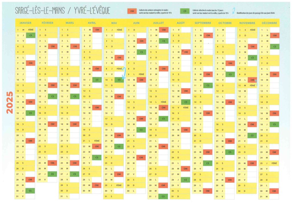 Calendrier de passage des encombrants: