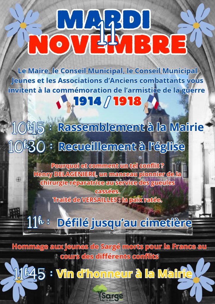 Le Maire, Le Conseil Municipal, Le Conseil Municipal Jeunes et les Associations d’Anciens combattants vous invitent à la commémoration de l’armistice de la guerre 1914/1918 le mardi 11 novembre 2025.