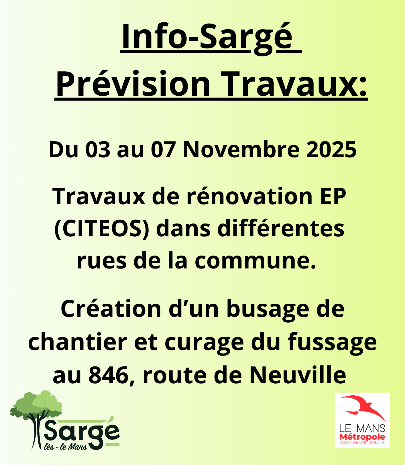 Tavaux de rénovation EP dans différentes rues de la commune ainsi que la création d’un busage de chantier et curage du fussage au 846 route de Neuville.