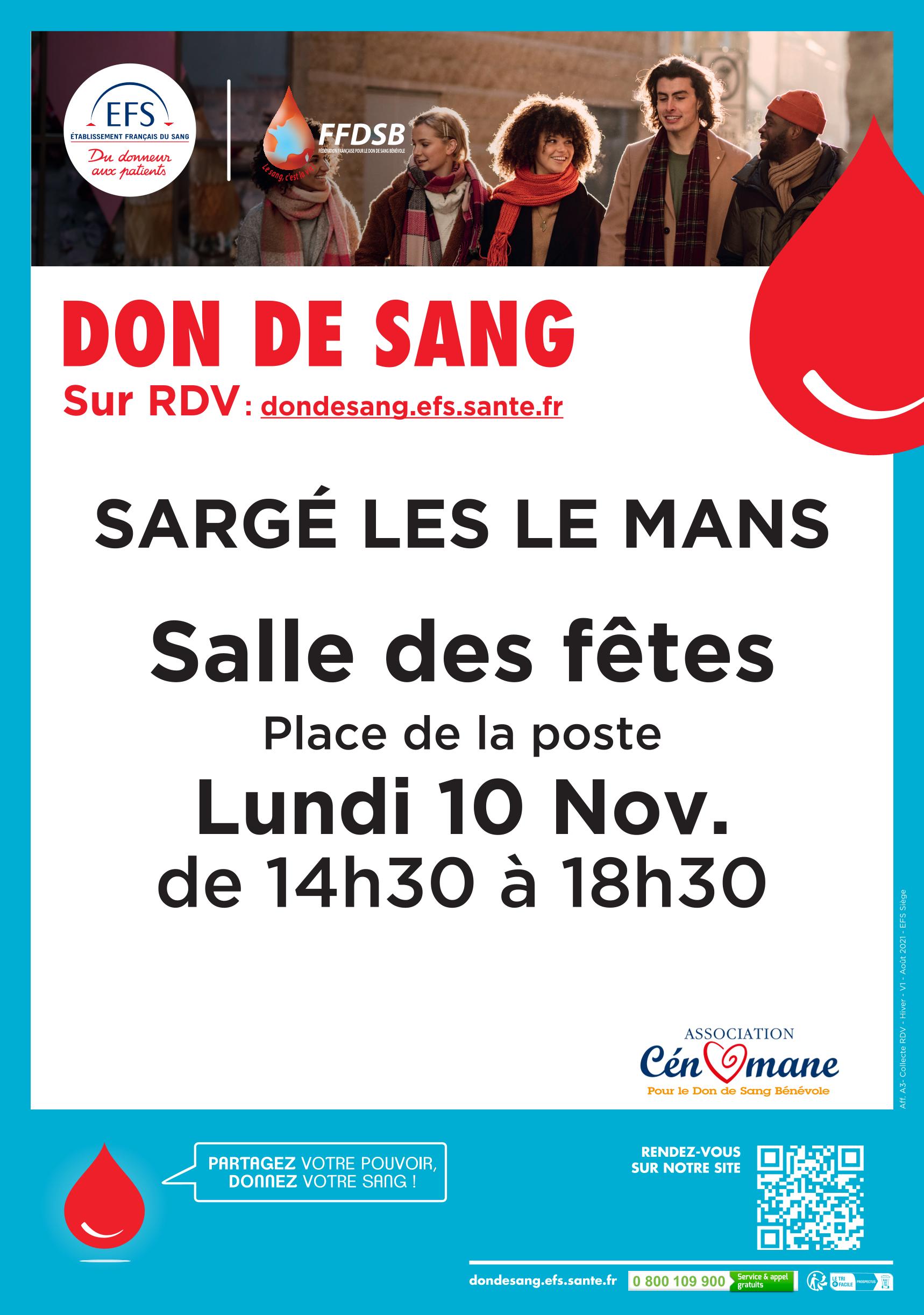 Don du sang – Lundi 10 novembre 2025 : Une collecte de sang auras à