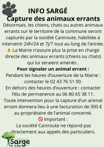 Désormais, les chiens, chats ou autres animaux errants sur le territoire de la commune seront